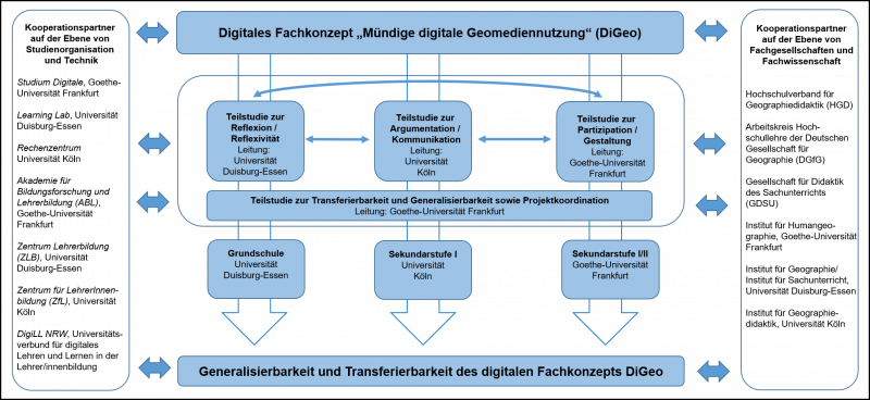 Das Verbundprojekt wird in enger Kooperation zwischen drei Hochschulstandorten und drei Fachgesellschaften sowie unter aktiver Beteiligung der entsprechenden Abteilungen der Lehrkräftebildungszentren und Hochschulrechenzentren der beteiligten Hochschulstandorte durchgeführt. Diese Transferkooperationen ermöglicht eine exzellente Konstellation der fachdidaktischen und fachlichen sowie organisatorischen und technisch-administrativen Vernetzung. Dies ist der Schlüssel, um die institutionellen Bedingungen und Prozesse zu erforschen und Möglichkeiten aufzuzeigen, wie digitale Fachkonzepte studiengangs- u. hochschulübergreifend entwickelt und in die Hochschullehre eingebracht werden können.